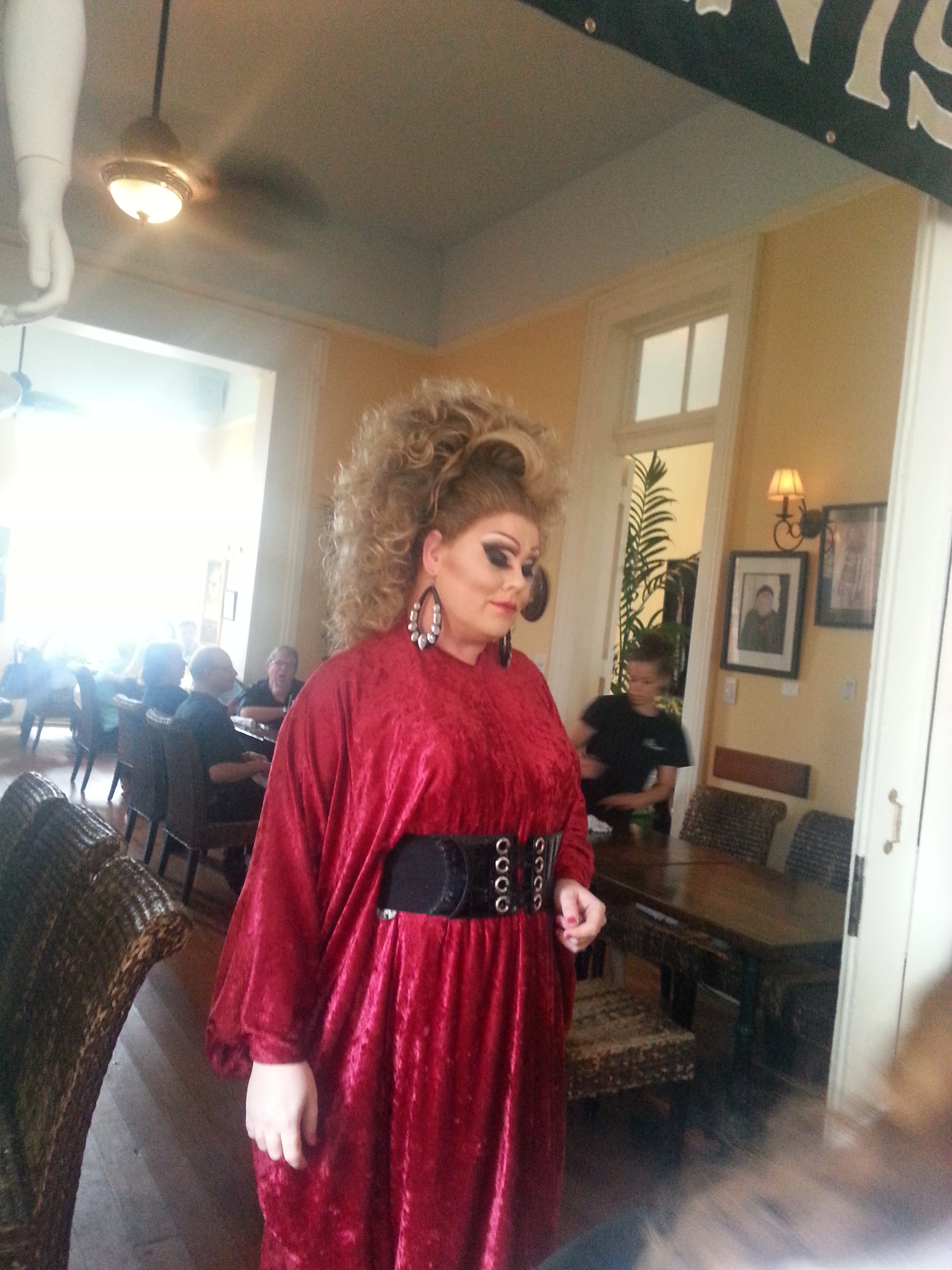 Introducing one of the more flamboyant performers in the Bywater show: The Country Club. This neighbourhood cornerstone provides a varied southern menu and has been a popular spot for brunch since before it was commonplace to proudly hang a rainbow flag out front. Brunch: hangover remedy, popular with those who are not early risers, intrinsically linked in these parts to the Bloody Mary. Two words possibly never associated with brunch: Drag and Queen…until now. This is New Orleans and the wonderful reality is on every 3rd Sunday of the month you best bring an open mind with that pounding head or queasy stomach, and some bills because these ladies don’t do anything by halves. Where else in the world could you get, ear drum splitting dance music and fried chicken and waffles all whilst enjoying the comforting caress of fake boobs….if you’re lucky enough. On this given Sunday Big Momma Lavouge was the star of the show and Madame brings her A-game. I had the pleasure of chatting to Big Momma weeks earlier in her civvies and the transformation is nothing short of wow; courtesy of wigs so plentiful they could defy gravitational pull and eye make-up Amy Winehouse may not have had the stones for. This is how Sundays should be.