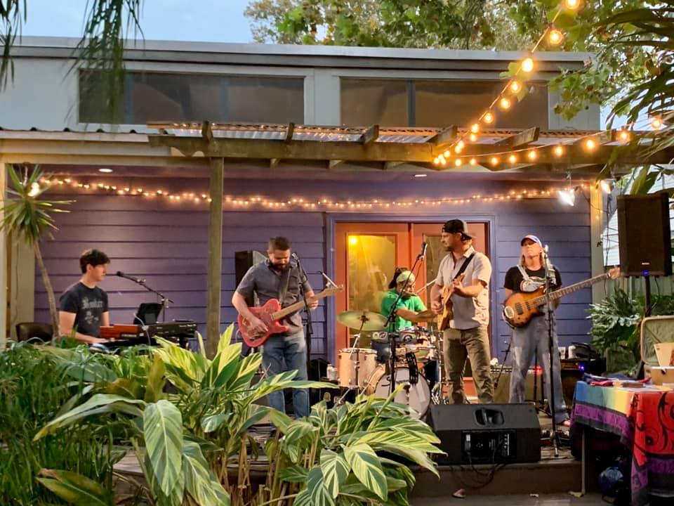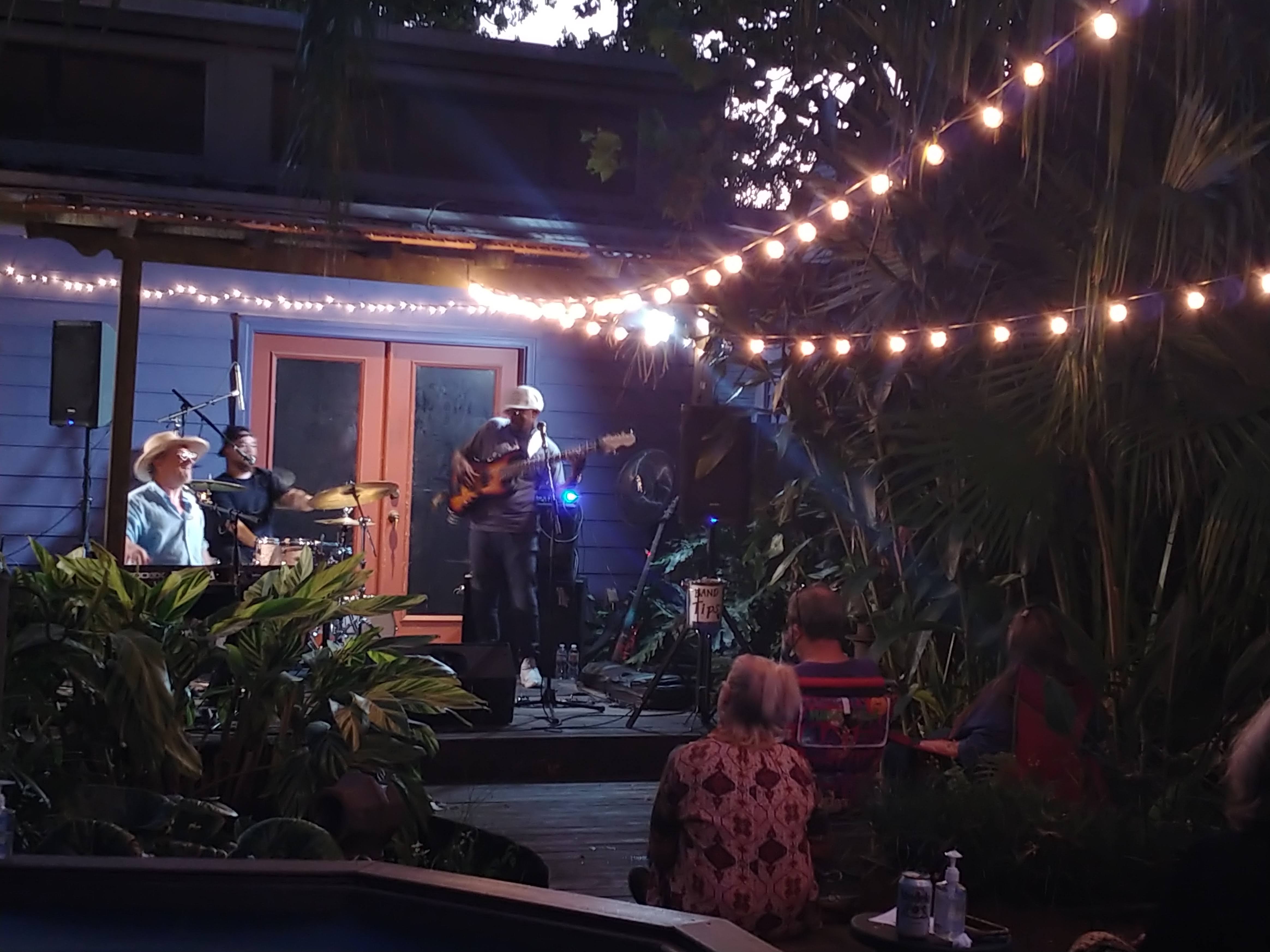 For those of us that miss drum beats thumping you can feel in your chest cavity, there was a haven in Pigeontown, and it went by the name of Heartbeat NOLA. Heartbeat NOLA which ran from August to December last year, was the brainchild of friends Anne Pillow Olsen, Camilla Franklin and Jason Scott, and was an in-person live music experience that went way beyond a saving grace. Nestled almost unobtrusively in the backyard of an otherwise ordinary looking side hall shotgun, Heartbeat NOLA provided a platform for staples of the New Orleans music scene, and up and comers alike, to perform and earn while their regular haunts are shuttered and uncertain of their future. Surrounded by luscious tropical plants cured with obvious love and care listening to professional, club-grade engineered sound from local maestro Michael Paz, was transportation to a dearly-missed time I know I’m guilty of taking for granted. Performers of such stature as Grammy-award winner Jon Cleary, and renowned locals Honey Island Swamp Band and Papa Mali, set up on the porch of a home studio and belted out their melodic magic for an hour plus and you almost forgot why it had to be that way. The dancing beneath strings of fairy lights was energetic and whimsical and added further cheek-creasing joy to a much-needed heart swelling. Guest numbers were limited, temperatures were taken, seating was set up with regulated distancing, permits from the City were on display and the mask-clad could meander but were asked to respectfully keep distances and observe the necessary protocols. This oasis of positivity and harmony took you to a state of calm that was the best therapy money can buy. Even Dingbat the cat digged on the vibes and could be seen laid flat out on a step….either ignoring or soaking up the atmosphere…..not quite sure.